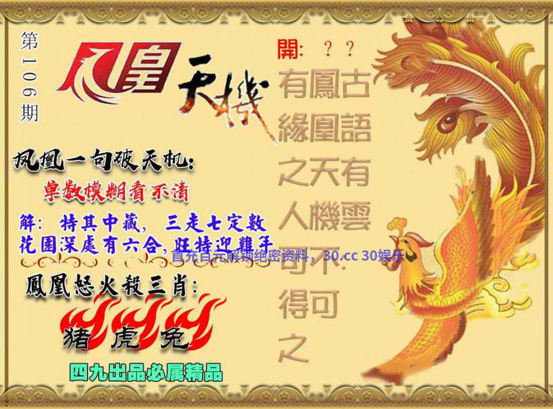 110期:正版资料【凤凰天机图】免费公开!